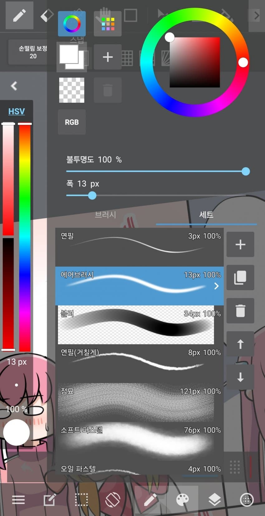 대충 제일 많이 쓰는 툴 연필, 에어브러시, 블러