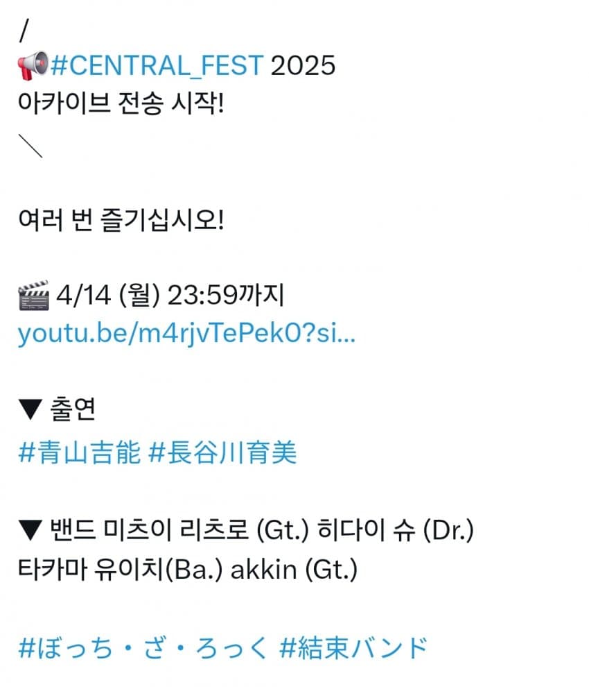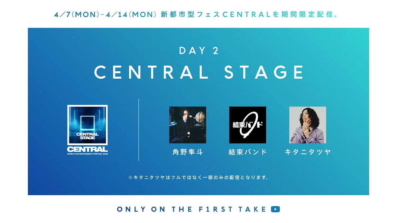 新都市型フェス「CENTRAL MUSIC & ENTERTAINMENT FESTIVAL 2025」アーカイブ映像をTHE FIRST TAKEにて期間限定で公開。 ここでしか味わえない一度きりの体験。 見逃せない一瞬を、ここから。 ※アーティストによっては、フルではなく一部の公開となります。予めご了承くださ...