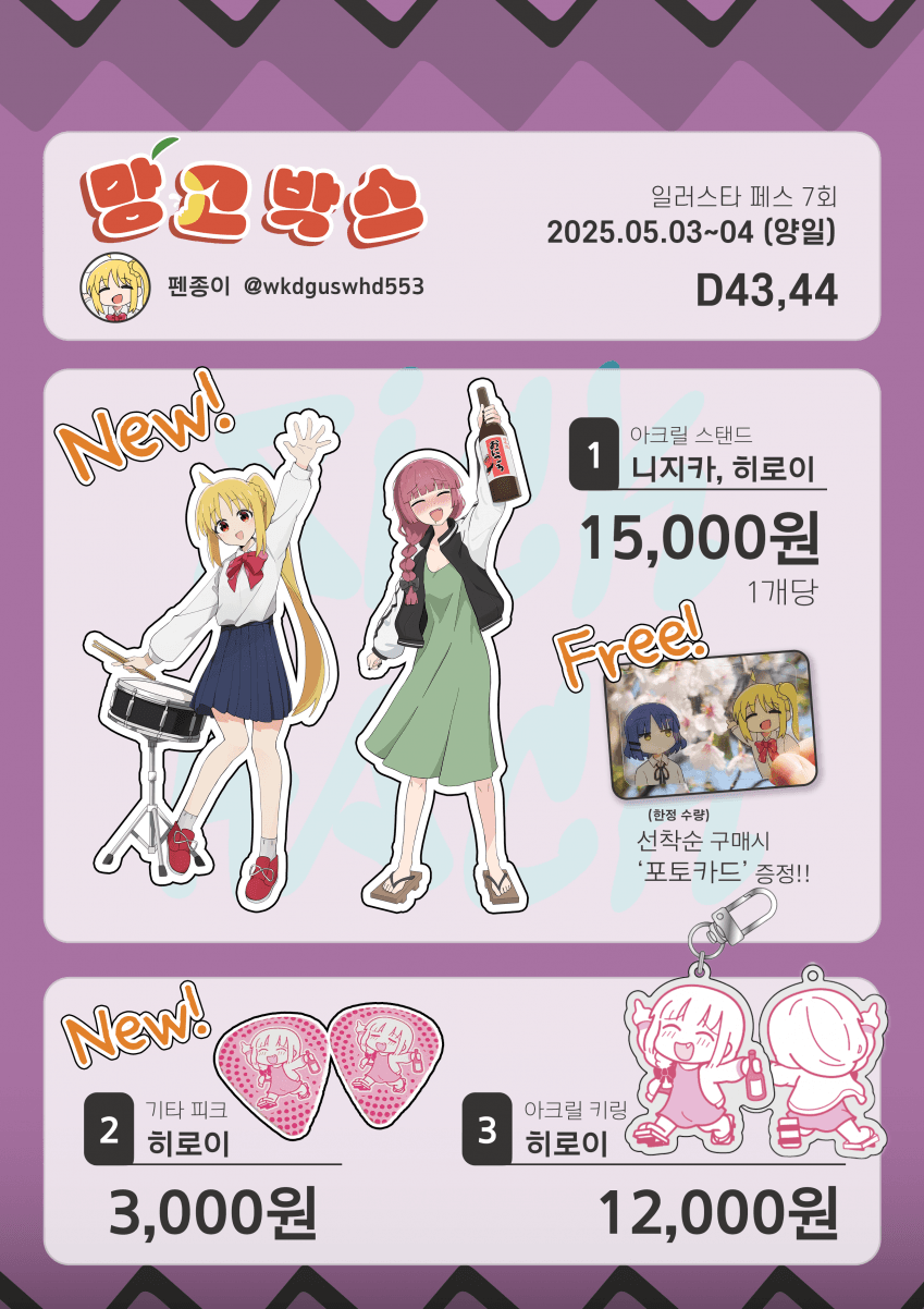 [5일페] 히로이 빠1큐 날리는 굿즈 보고 가세요~ D43,44 망고박스