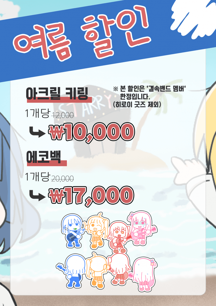 이번 서코 상당히 더울 것으로 예상 되는데.. 조금 이나마 기분 좋게 놀다가시라고 굿즈를 세일 하고 있습니다.