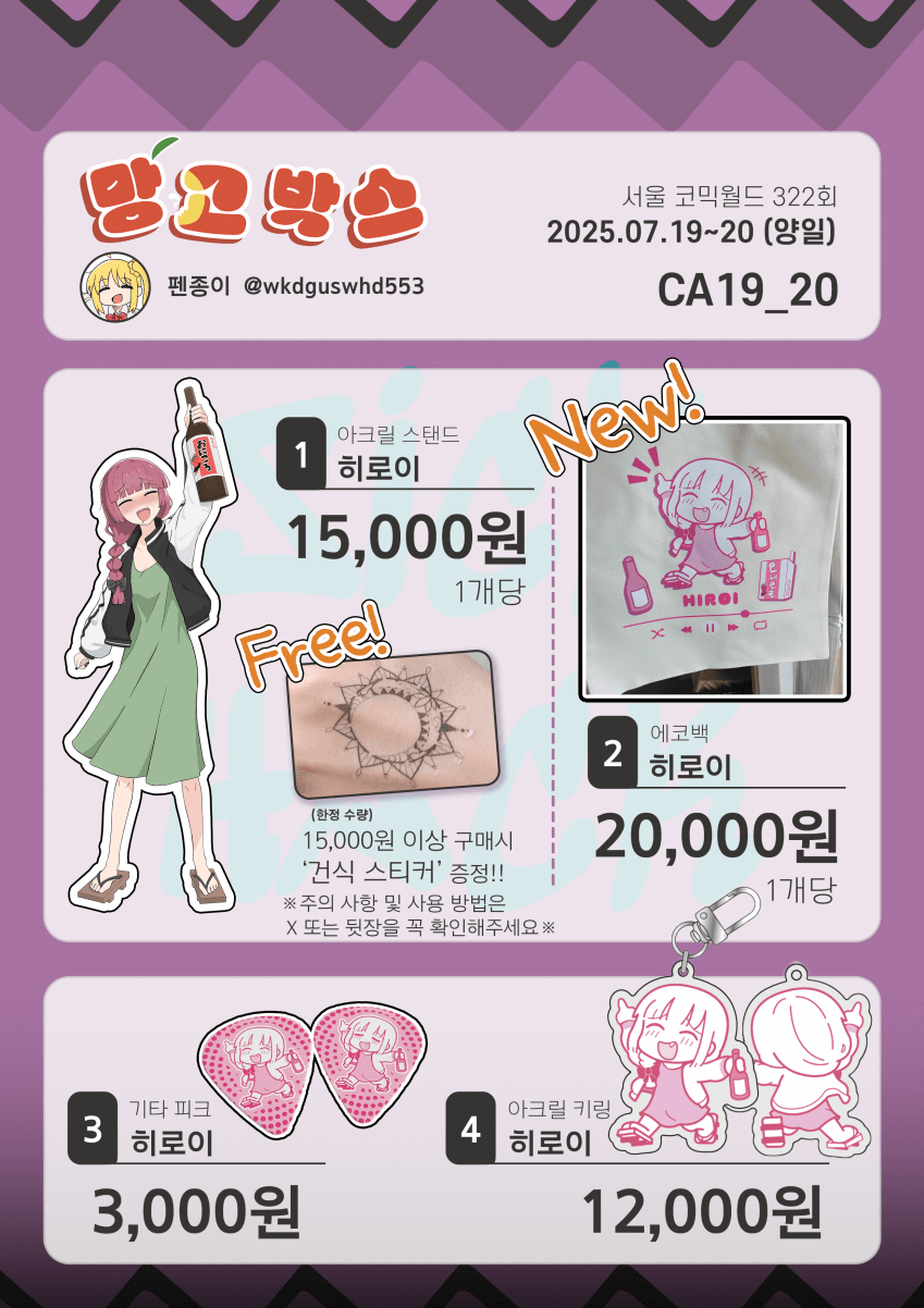 5월 이후로 개인 공부도 하고 동인지(회지)를 준비하며 지내다 보니, 새로운 굿즈를 많이 준비 못했네요 ㅠ