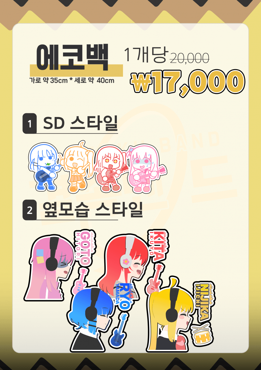 굿즈가 모두 소진되면 봇치더락 SD 중심이 아닌 이번에 만드는 회지 중심 테마로 굿즈 디자인을 새롭게 할 예정입니다.