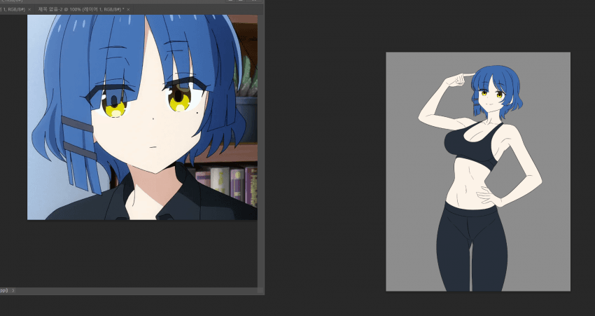 최대한 애니 작화 느낌을 내고 싶었기 때문에 참고 자료와 비슷하게 칠해줌