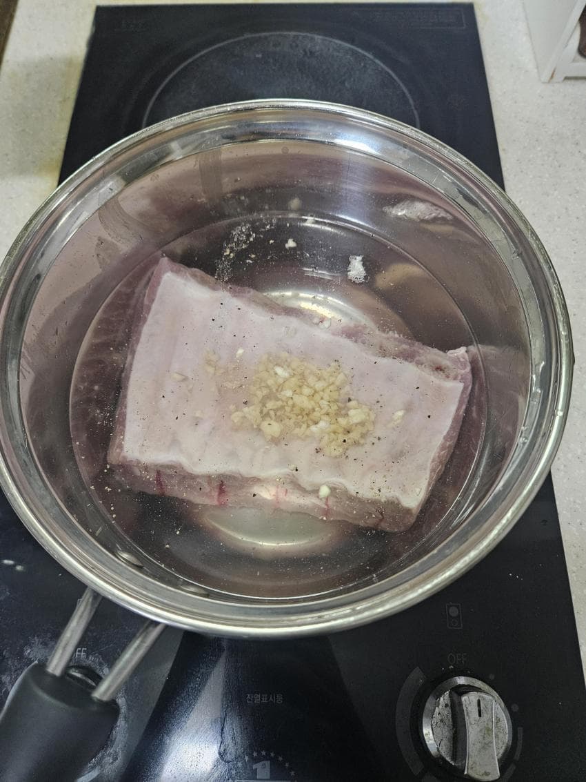 그래서 일단 사온 고기를 잡내잡을 마늘 후추 된장 넣어서 삶고