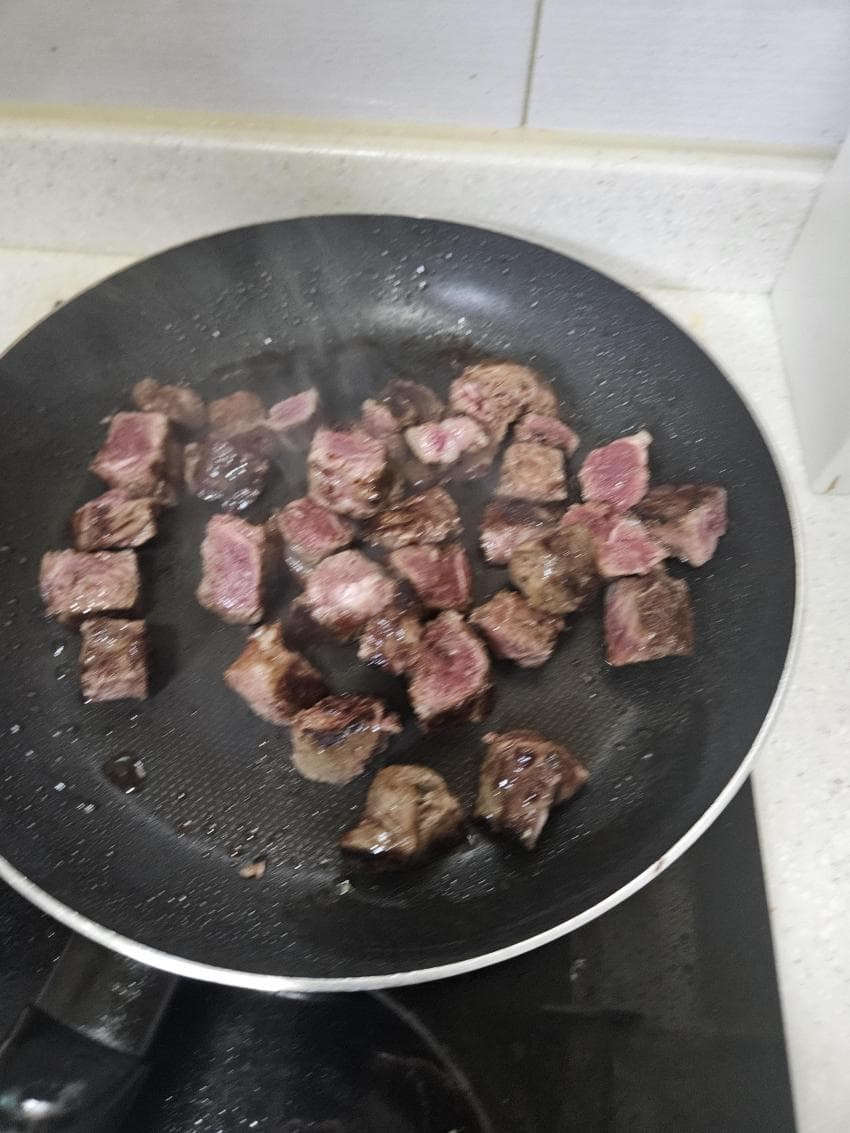 자르고 나서는 팬에 조금만 둬도 질겨져서 빠르게 빼야함