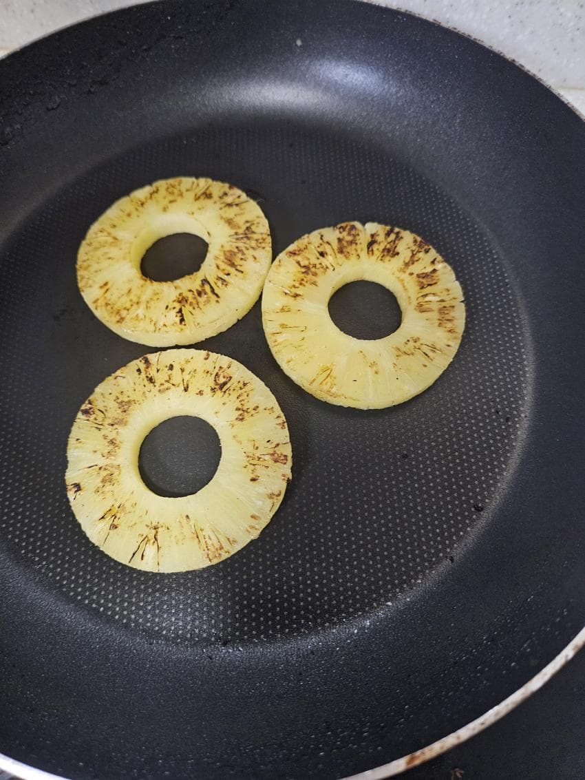 설탕 좀 뿌려서 팬에 굽기만 하면 끝.