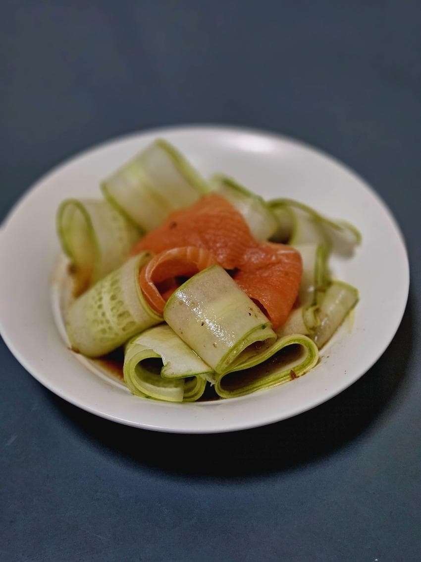거꾸로 강을 거슬러 오르는 힘찬 연어를 얹어서 완성