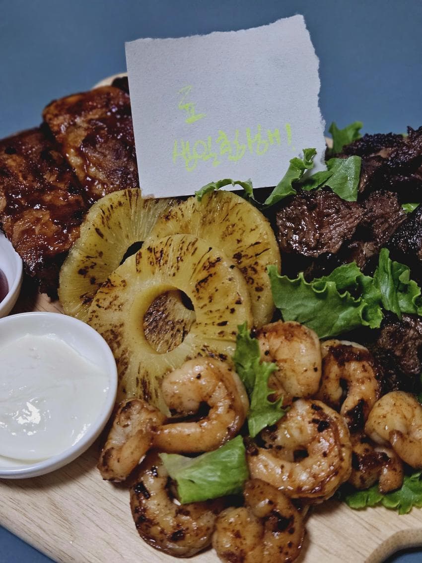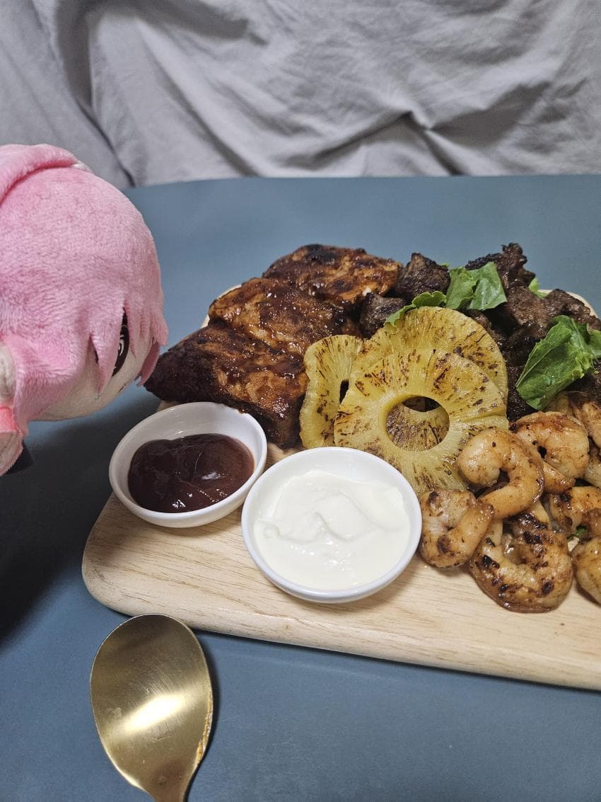 그랜드캐년 폭립 + 마추픽추 풀때기 얹은 고기 + 샌디에이고 파인애플 올려서 바비큐 플래터 완성!