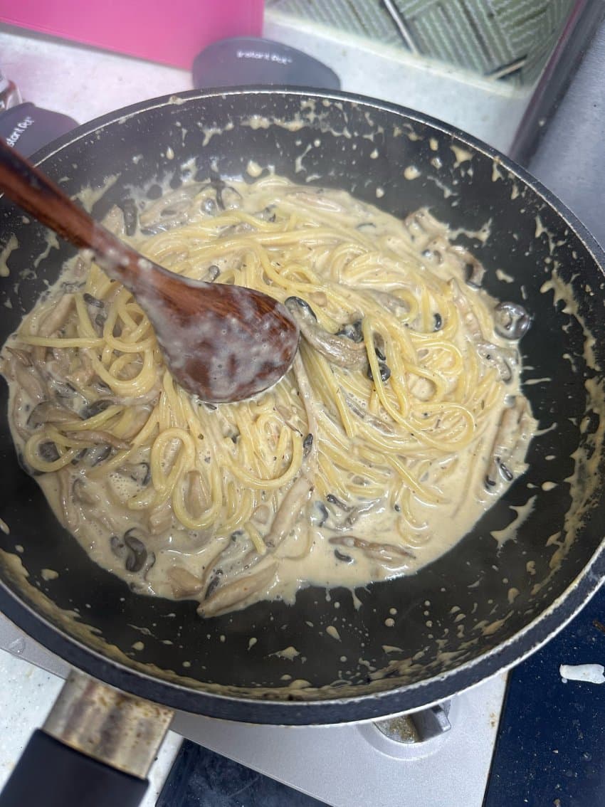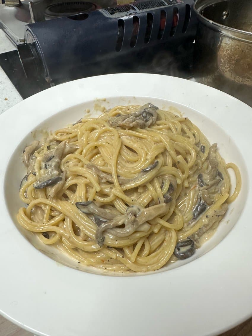 일단 크림이 안들어갔는데 크림 파스타 만큼의 진한 고소함이 나는것도 신기하고.. 치즈가 안들어갔는데 치즈맛이 나는것도 신기하고.. 당연히 크림 넣은게 더 맛있지만 돈 없을때 해먹기에 좋은듯