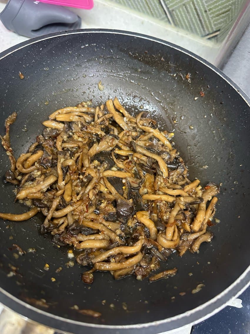 버섯 넣고 버섯도 갈색빛 날때까지 볶아주면 댐