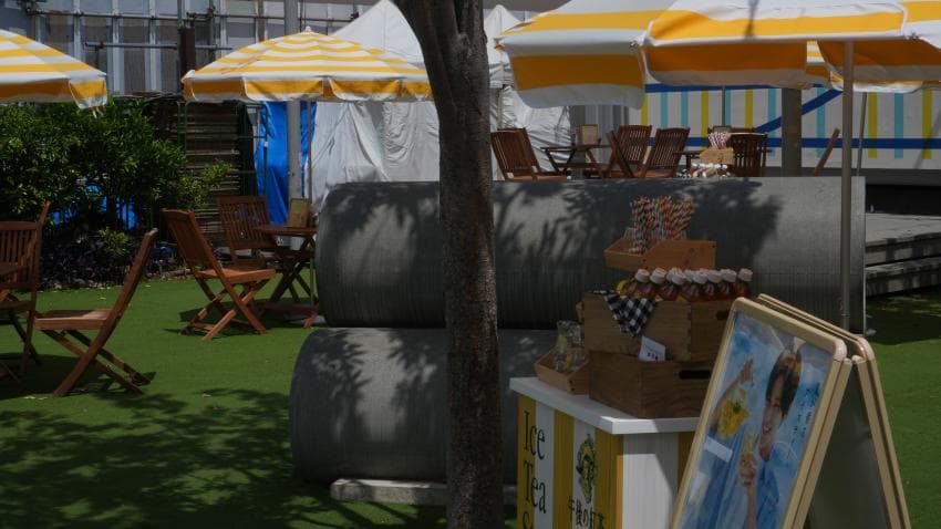 사진에서 보이듯 줄을 쳐놔서 그 안에는 티켓을 사야 들어갈 수 있는 구조였음