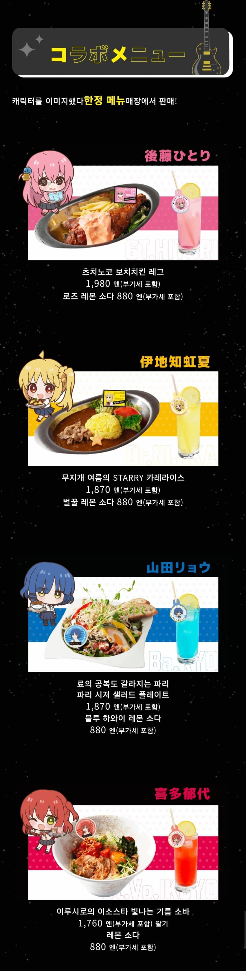 【これがコラボフードです!】・ツチノコぼっちチキンレッグ・虹夏のSTARRYカレーライス・リョウの空腹も紛れるパリパリシーザーサラダプレート・郁代のイソスタ映え油そばさらに、4人のイメージカラーを表現したレモンソーダもご用意!コラボメニューの写真も公開中!詳細はこちら▼…