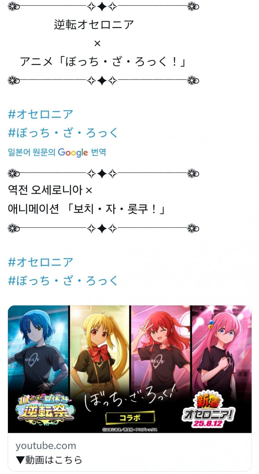 ❁⃘──────✧✦✧──────❁⃘ 逆転オセロニア × アニメ「ぼっち・ざ・ろっく!」❁⃘──────✧✦✧──────❁⃘