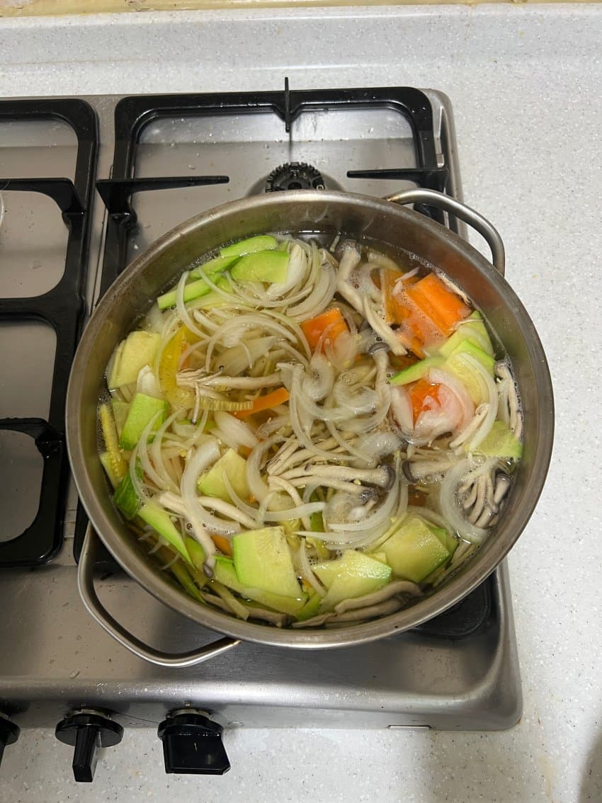 노계 삶은물은 버리지말고 그대로 썰어둔 채소 투하
