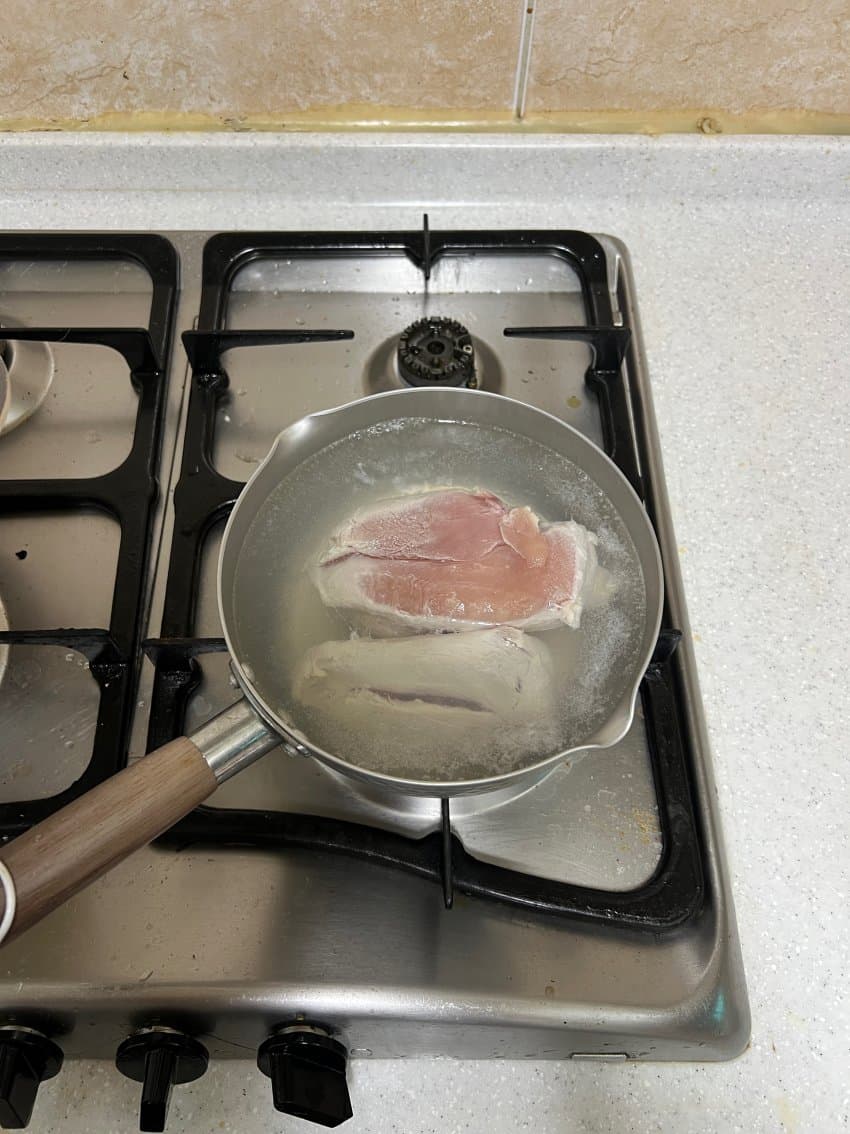 시간이 됐으면 다 삶은 젖통을 꺼내서 결대로 찢어준다