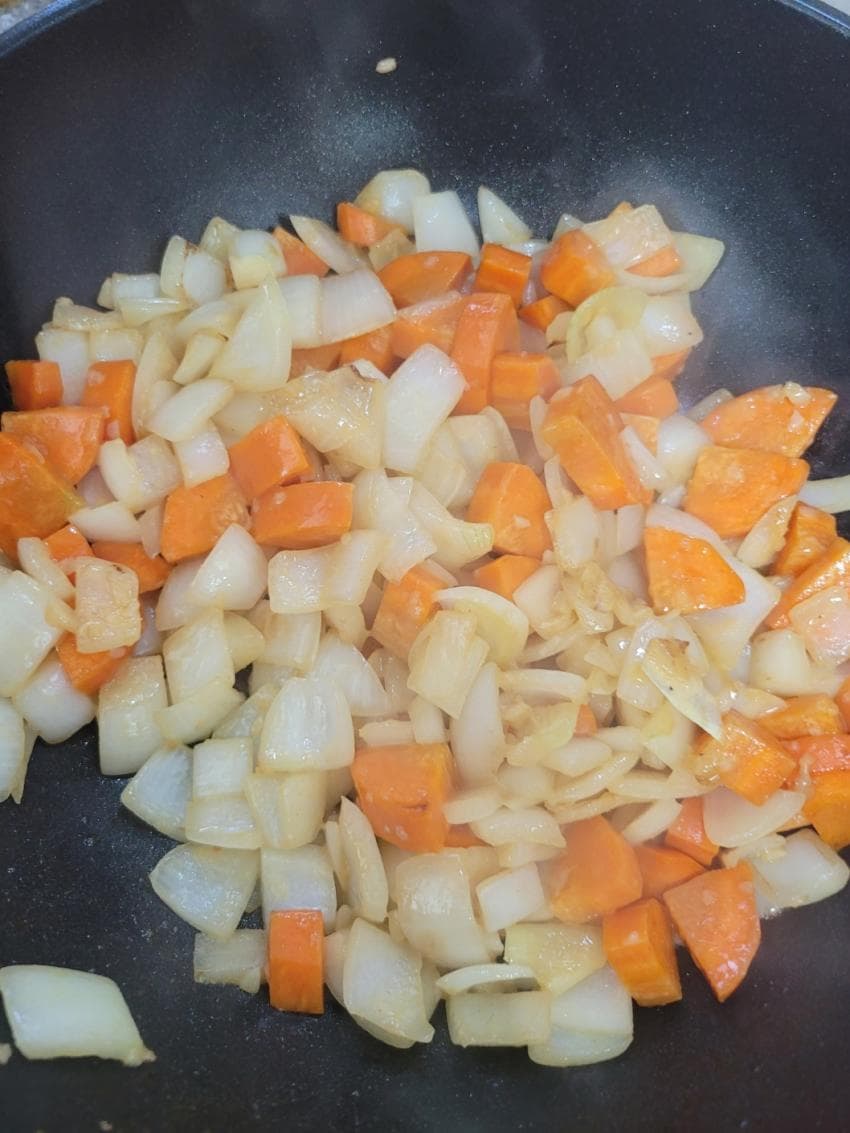 양파 당근은 고기 굽던 팬에 버터, 다진 마늘 2숟갈이랑 넣고 똑같이 겉만 노릇해질 정도로만 굽고