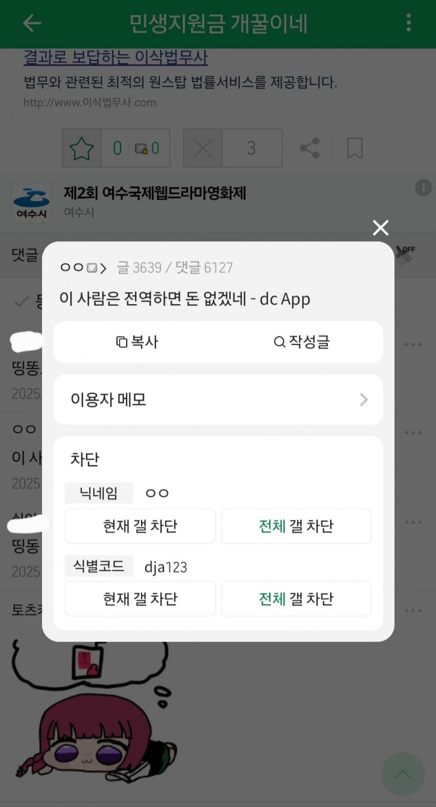그외에도 게시글마다 답글 여러개 달아가며 서로 좆비비는거나