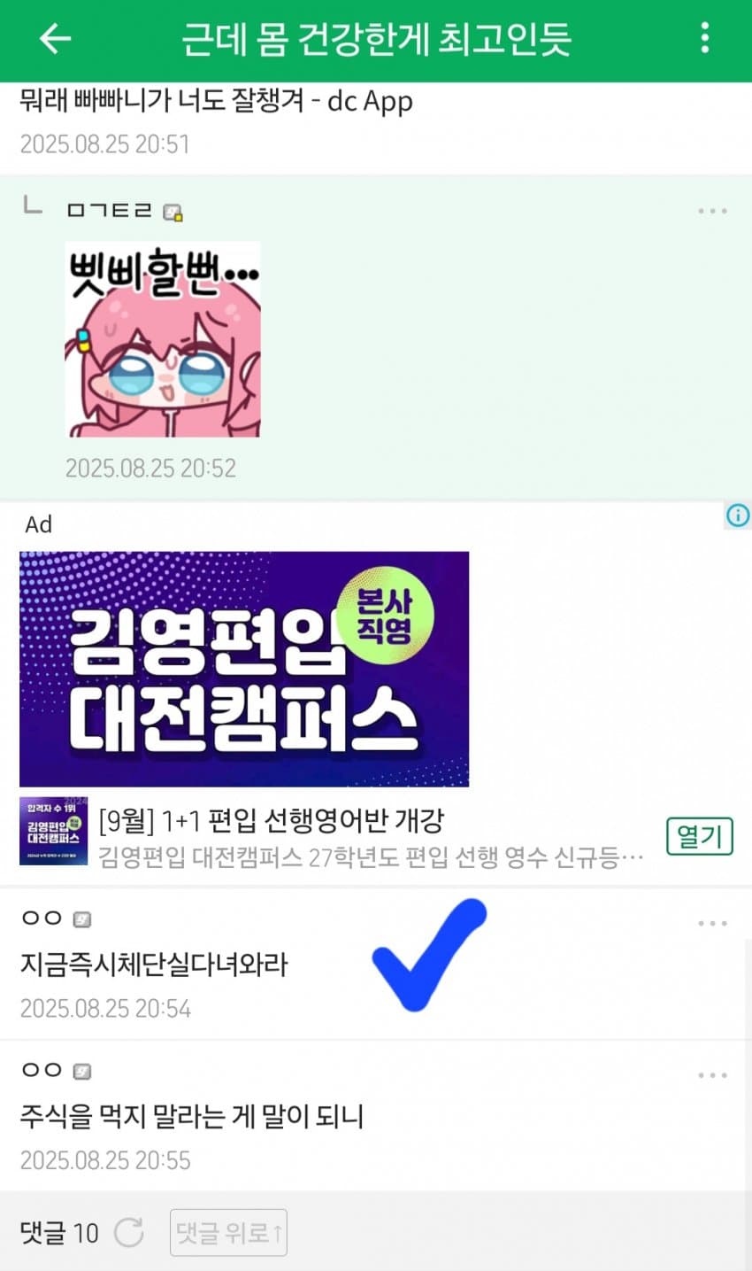 '후배'라는 고닉이 파딱 달고 아래 이 고닉한테