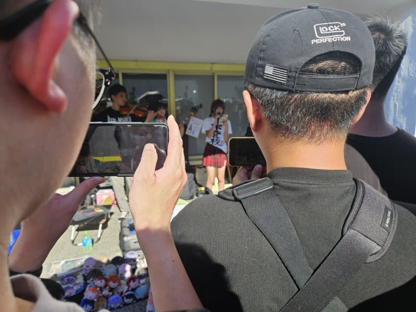 3일차도 생각보다 변화가 크진 않아서 몇바퀴만 둘러보고 밖에서 코스어 찍는거 위주로 다녔는데 이 날은 뱅드림 좋아하는 사람들이 밴드를 치고 있는데...