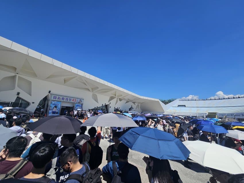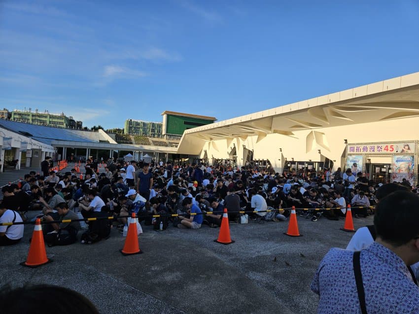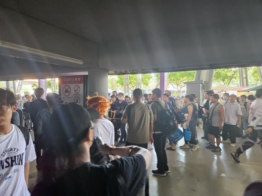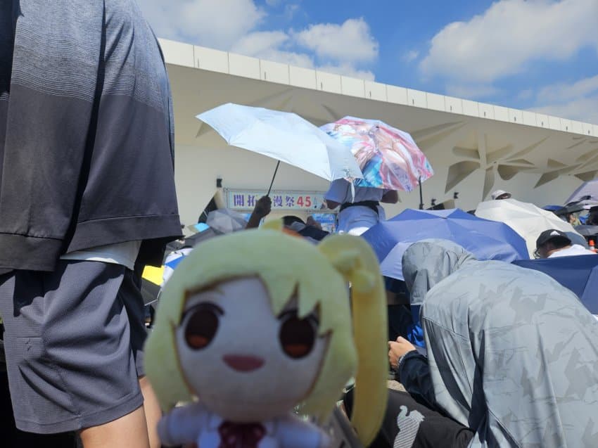 씹덕들이 모여있다. 이때가 아침 6시 20분인데 벌써부터 이만큼이나 모여있는 씹덕들의 모습이다. 근데 이 그늘이 아침이 될수록 서서히 걷히는데...