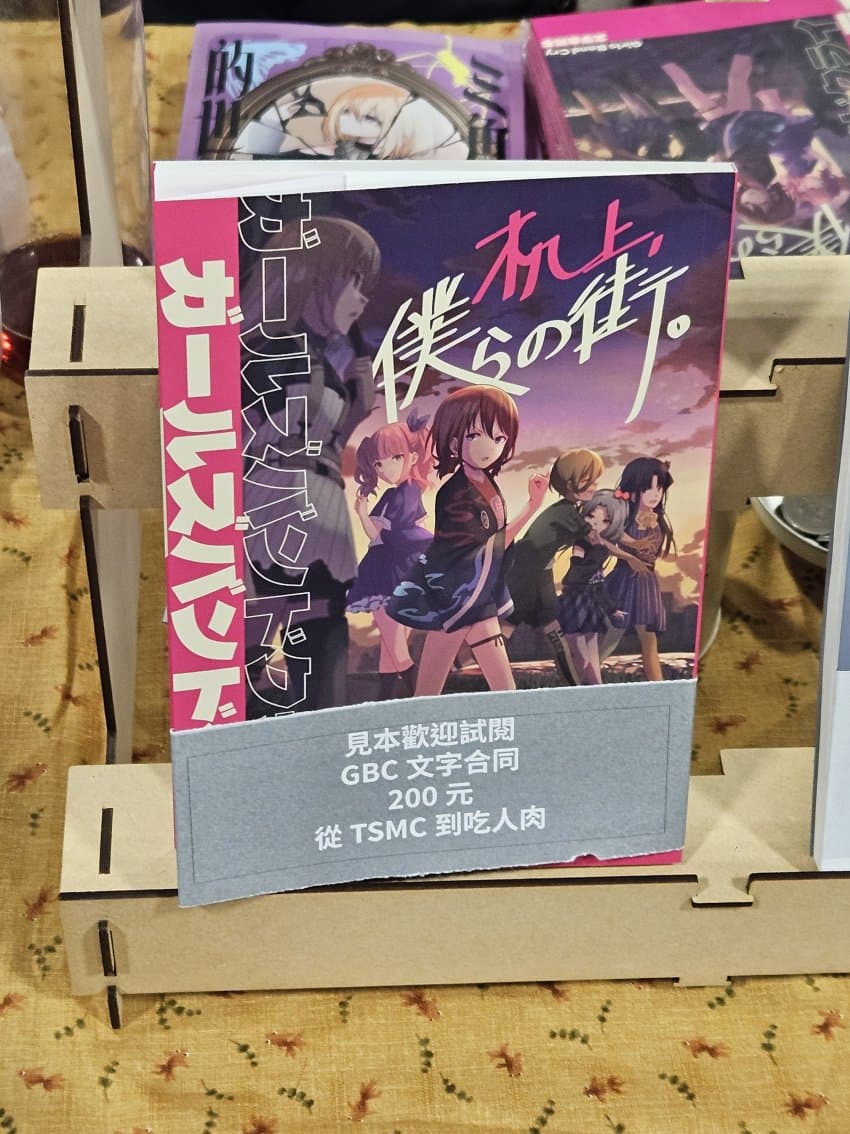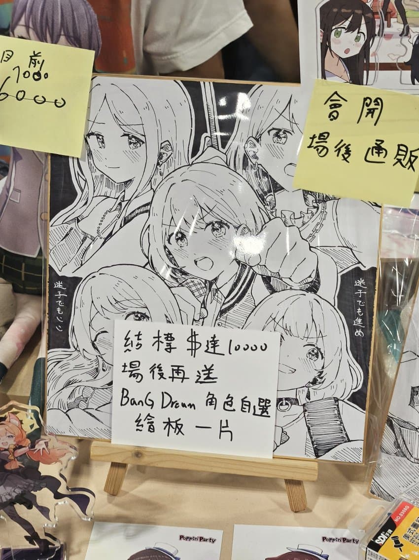 3일동안 뛰어다니면서 느낀게 대만은 뱅드림 인기가 장난 아니다. 다른 밴드 애니 장르에 비해서 압도적임. 방도리 취급하는 서클이 꽤 많고 특히 최근 시리즈들이 인기가 많았음. 아 참고로 전 방첩 아니에요 결속밴드만 좋아합니다. 음악도 결속밴드만 들어요
