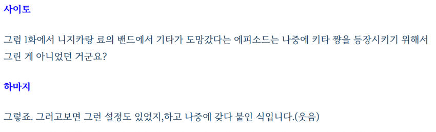 + 총집편에서 봇치의 독백이 키타와의 대화로 바뀜
