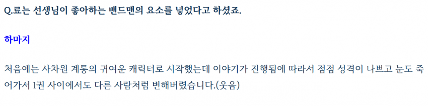 : 사차원 계통의 귀여운 캐릭터에서 성격 나쁜 캐릭터로 변함