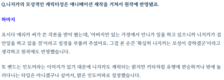 : 애니 각본을 통해 모성적인 캐릭터성이 원작에도 반영