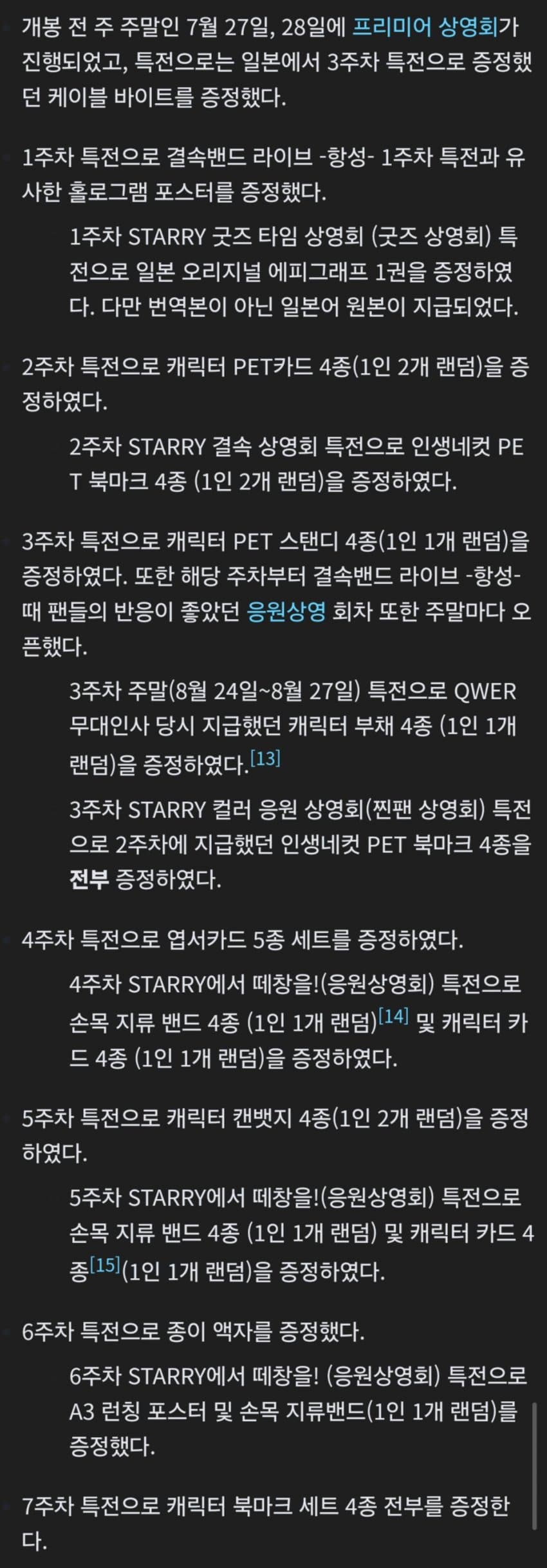 + 랜덤 없는 특전 평일, 주말 나눠놓음