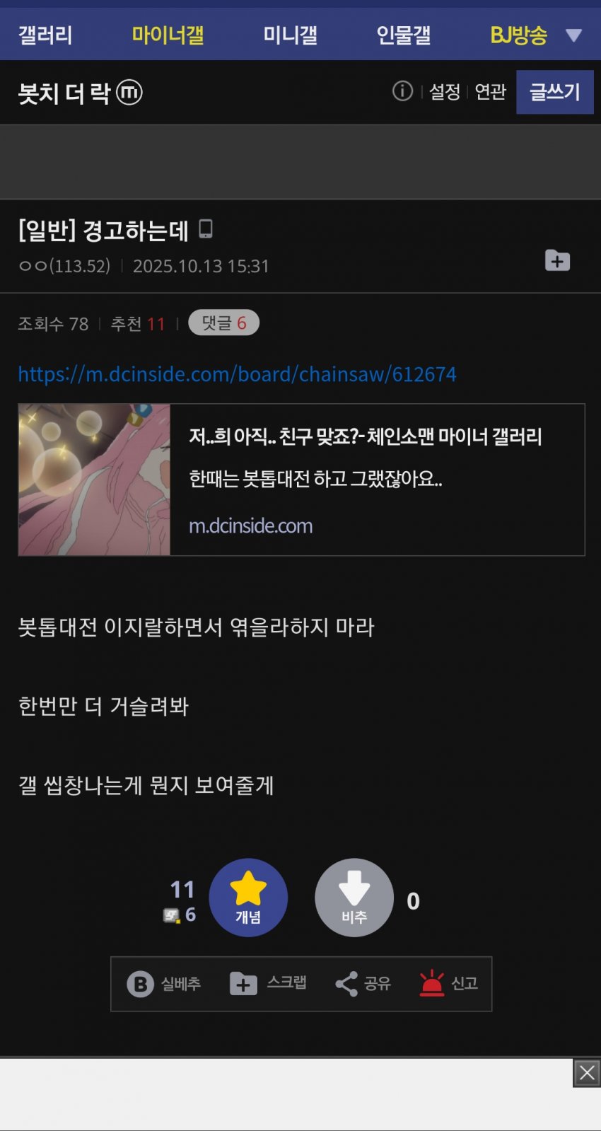 봇갤에서 톱맨 얘기한다고 천안문을 한 적있나?