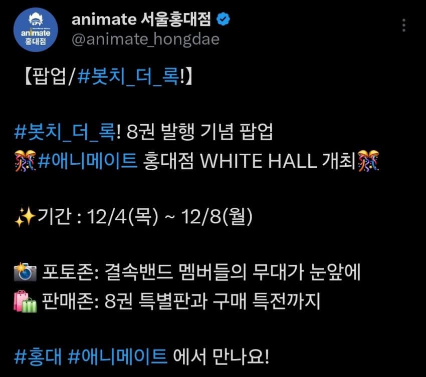 애니메이트 팝업 개최