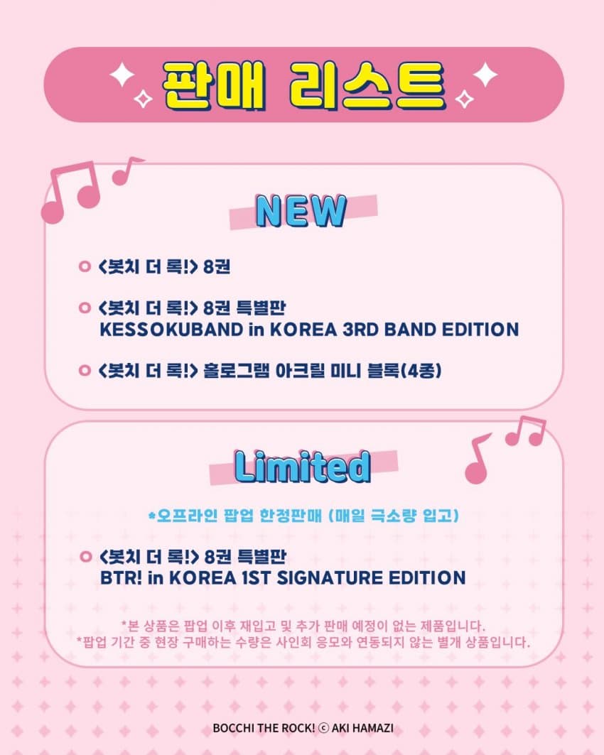 원작 팝업 정보(특전 및 판매 리스트)