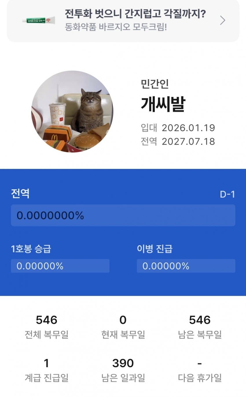전역 D-1이 아니라 입대였네 ㅋㅋㅋㅋ