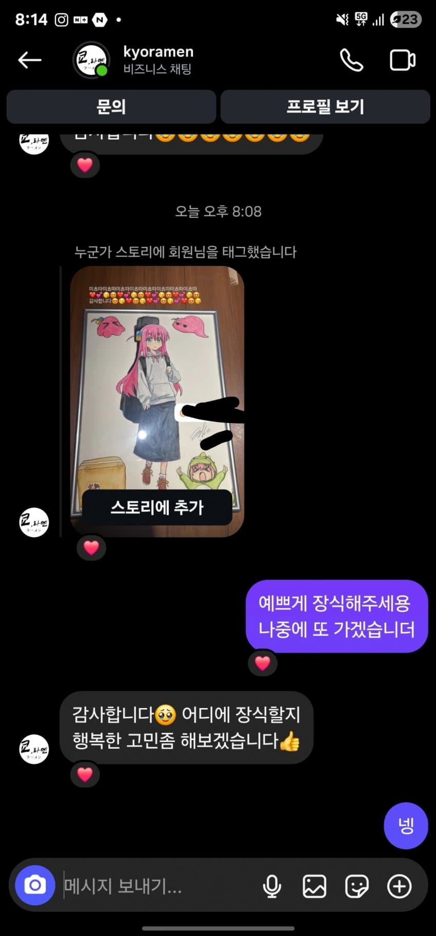 본인 그림 쿄라멘에 전달됨