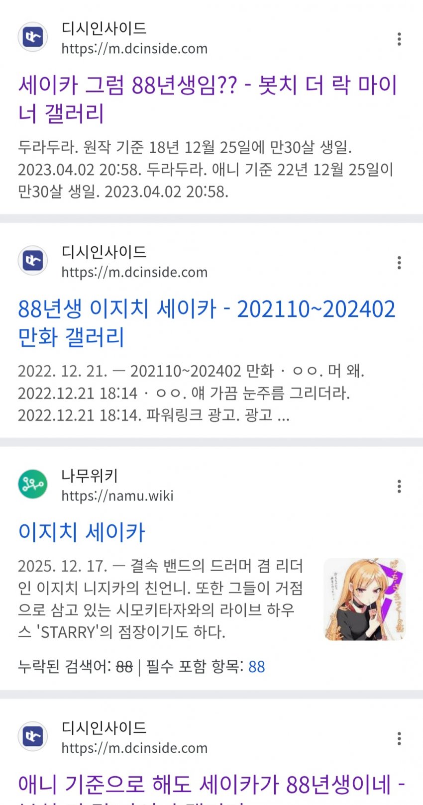 갤에 세이카 보다 나이 많다는 애들 왜이리 많음