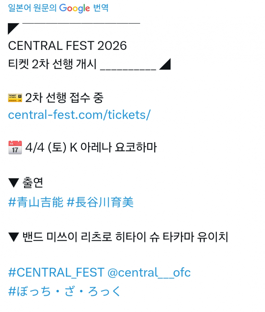 * 4월 초 - 센트럴 페스티벌
