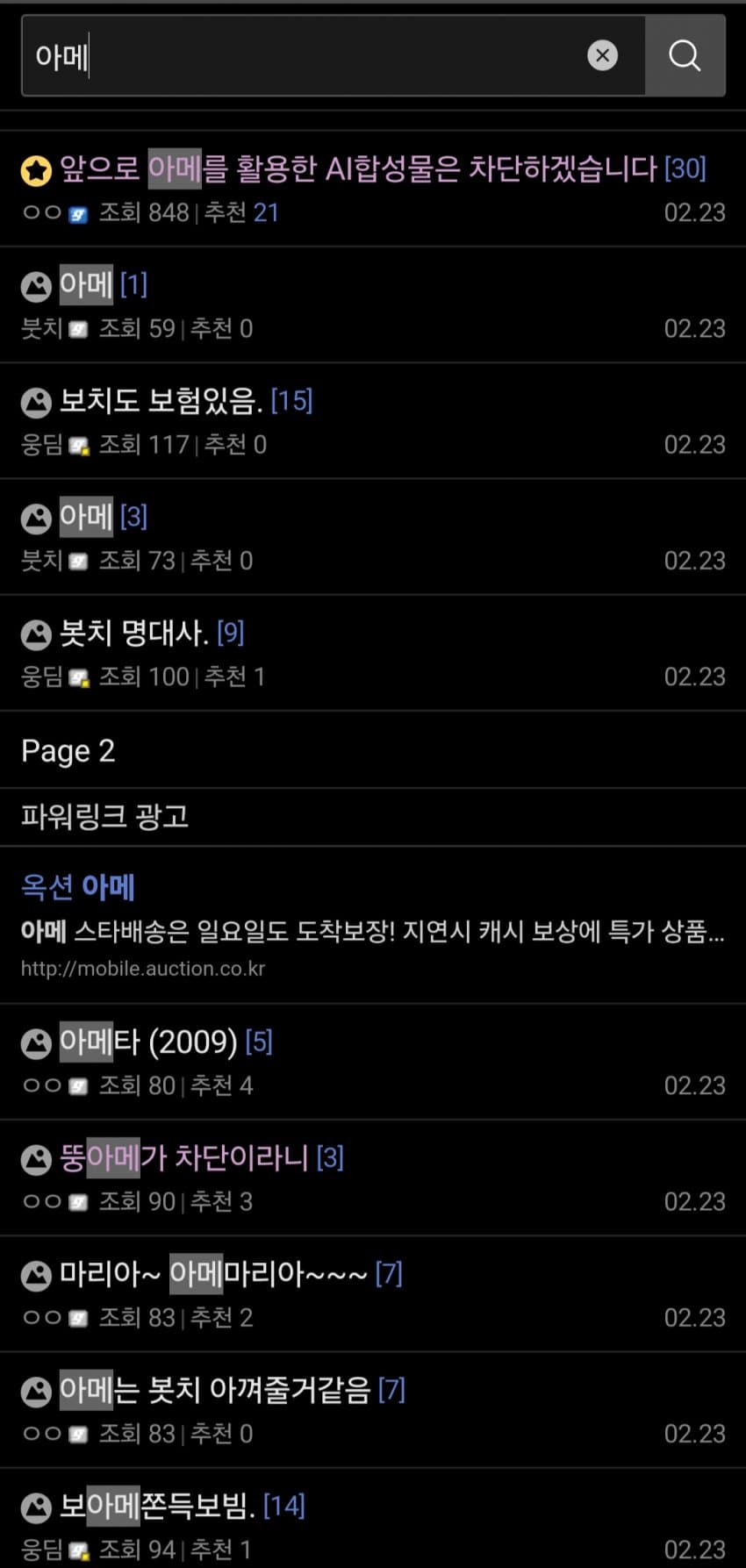 ㅇㅇ 2~3페이지 제목만 봐도 걍 wwe 아메석방,흔한 커플링 사진 아메/리카노같은 낚시글이 끝임