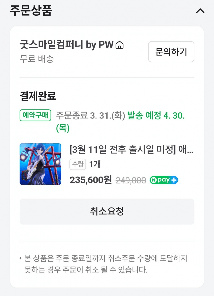 료 피규어 샀다