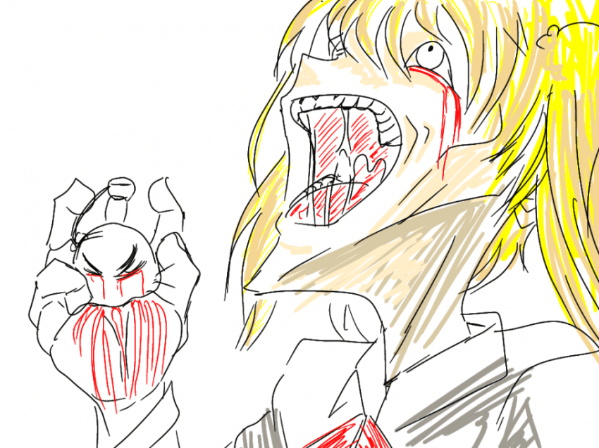 순식간에 벽은 붉은 피와 우동사리와도 같은 내장 그리고 묽은 배설물로 뒤덮였다