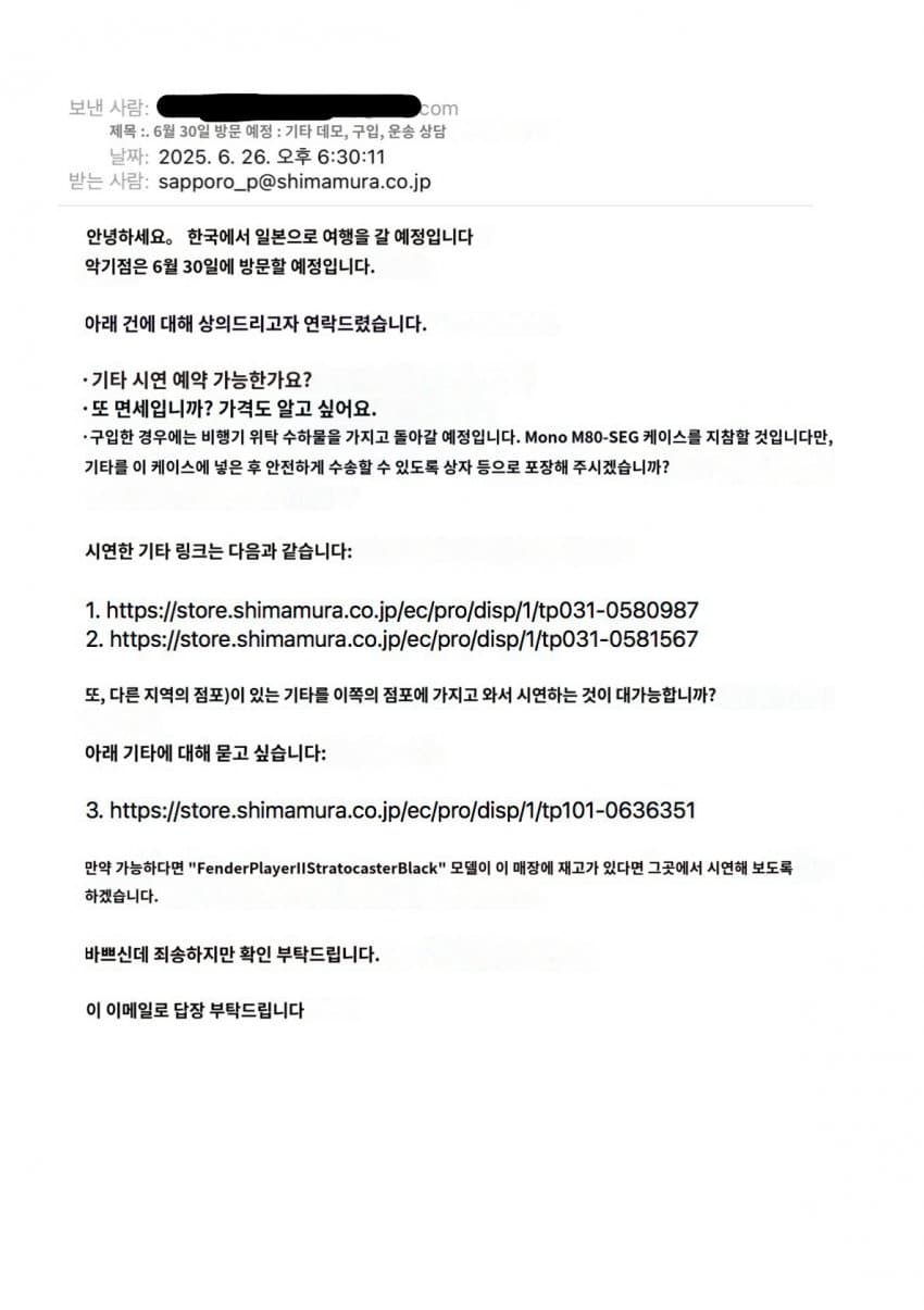 일본 삿포로에 있는 악기점 중에 시마무라 악기를 가기로 했음