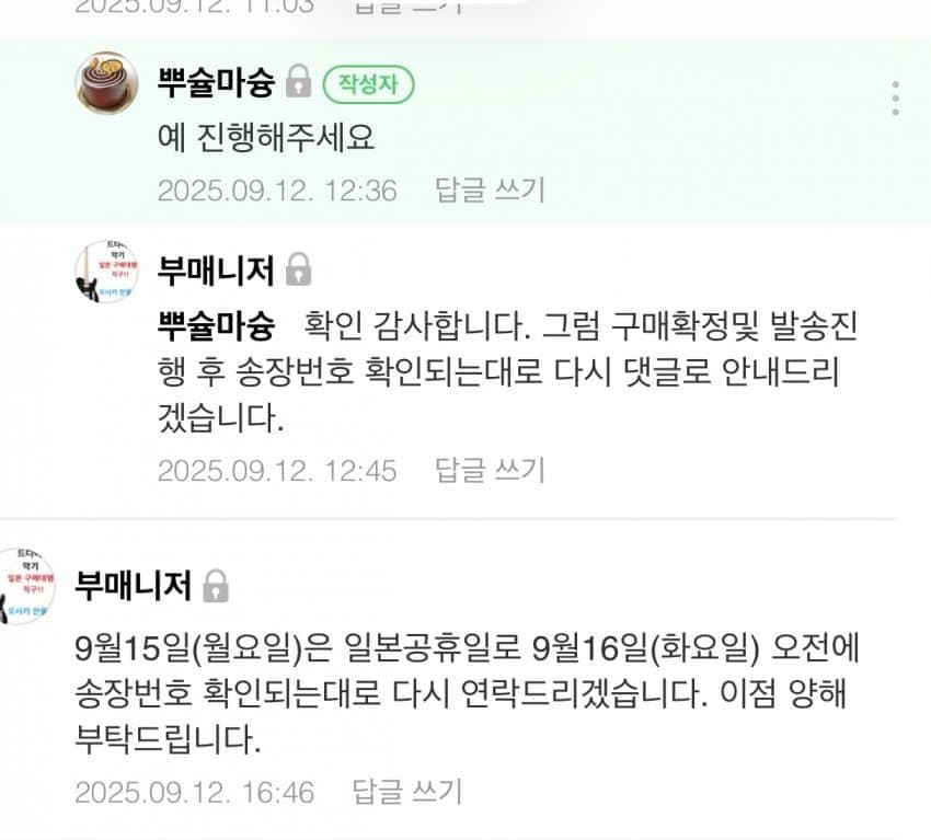 11일 입금 12일 만물상에서 상품수령