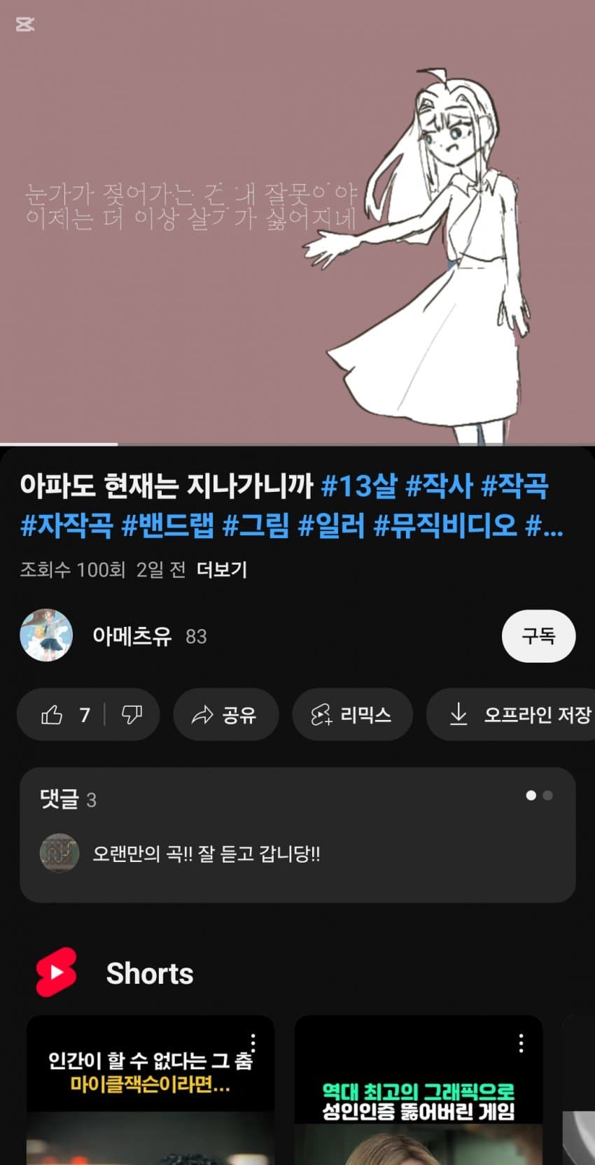 아니 13살짜리 자작곡에 댓글 단 사람 닉이...