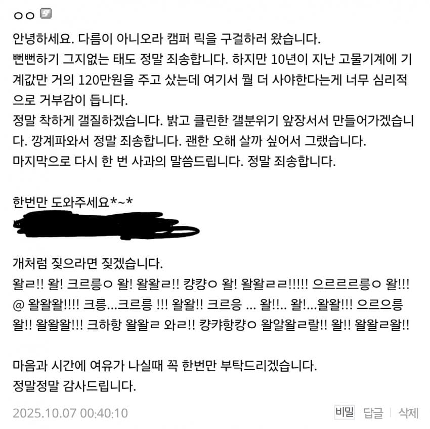 켐퍼릭 동냥 비밀글 많이 달리는데
