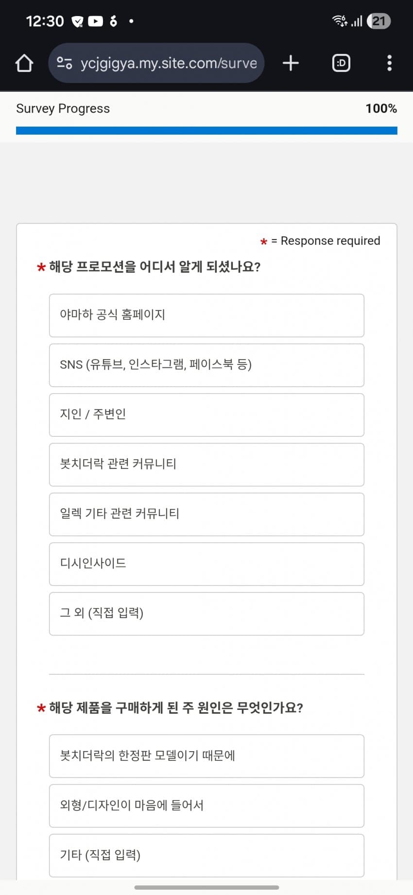 야마하 봇치 프로모션 설문조사인데 ㅅㅂ 뭐냐