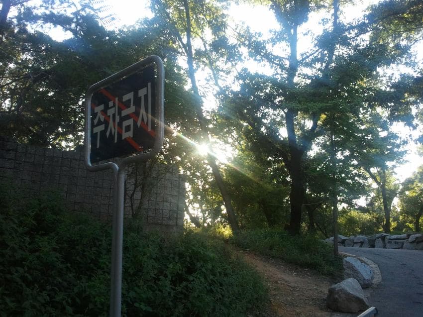 [실제 학교앞 사진. 저렇게 햇살이 나무 사이로 비쳤음.]
