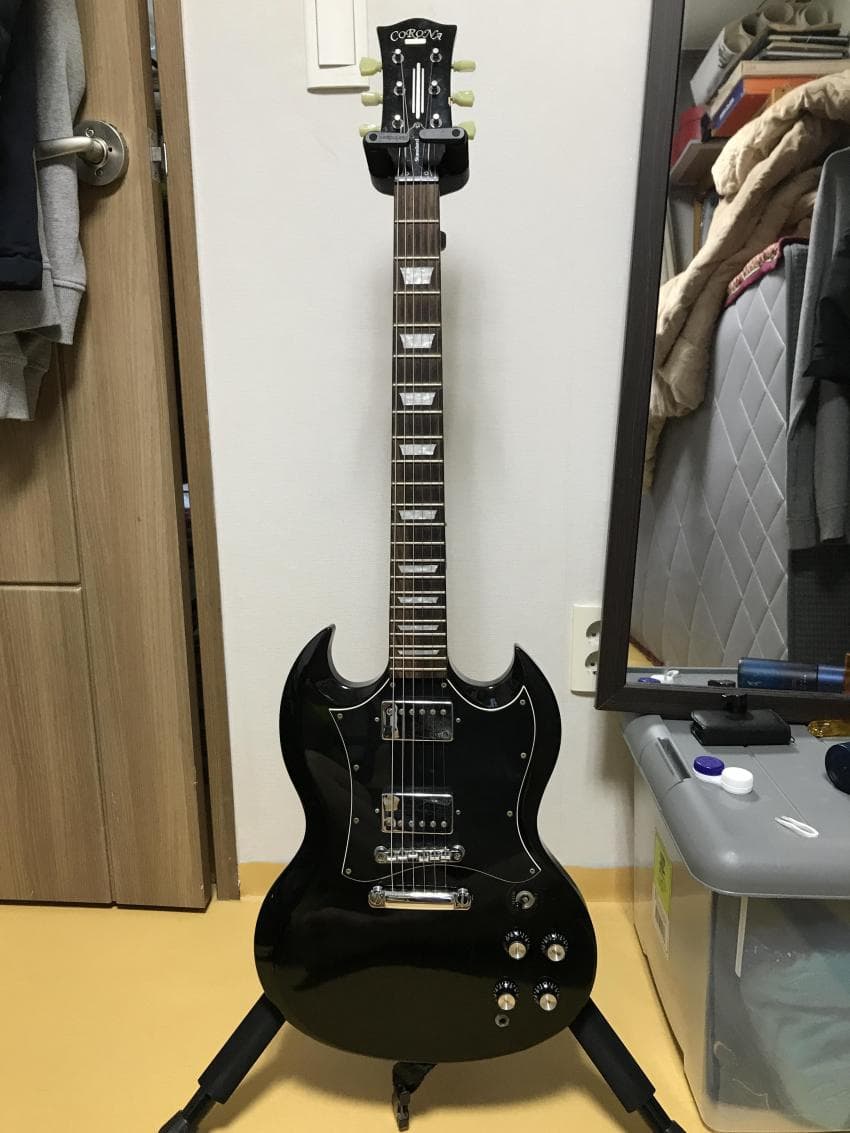 난 근본 체리를 사고 싶었는데 그때 스쿨뮤직에 코로나 SG 체리 색상이 재고가 없었다. 하루라도 빨리 진짜 내 기타를 가지고 싶어서 어쩔 수 없이 에보니 색상으로 주문함.