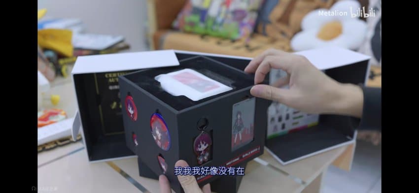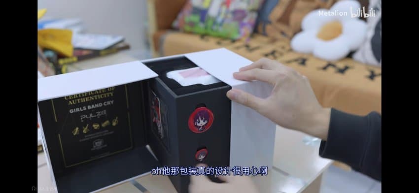 구성품은 본체, 카드, 방향제, 키링, 피크2개, 배지2개, 스티커, 증명서, 걸이야!