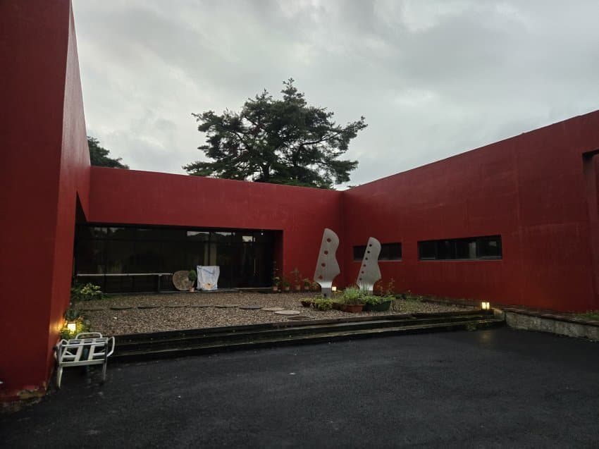 새빨간 건물 전경이야 날이 좀 흐리긴 했는데 금장 로고 멋있었음