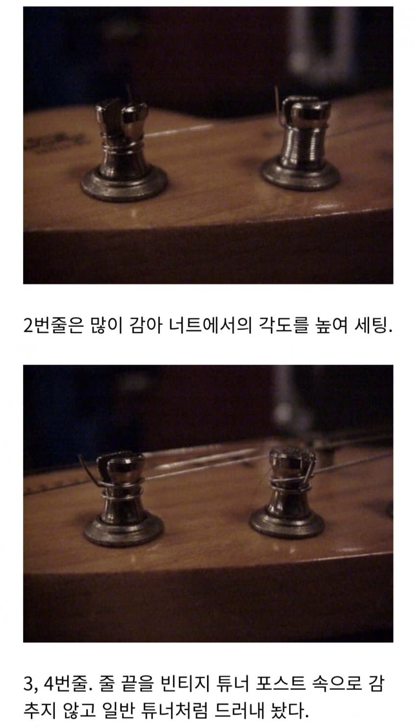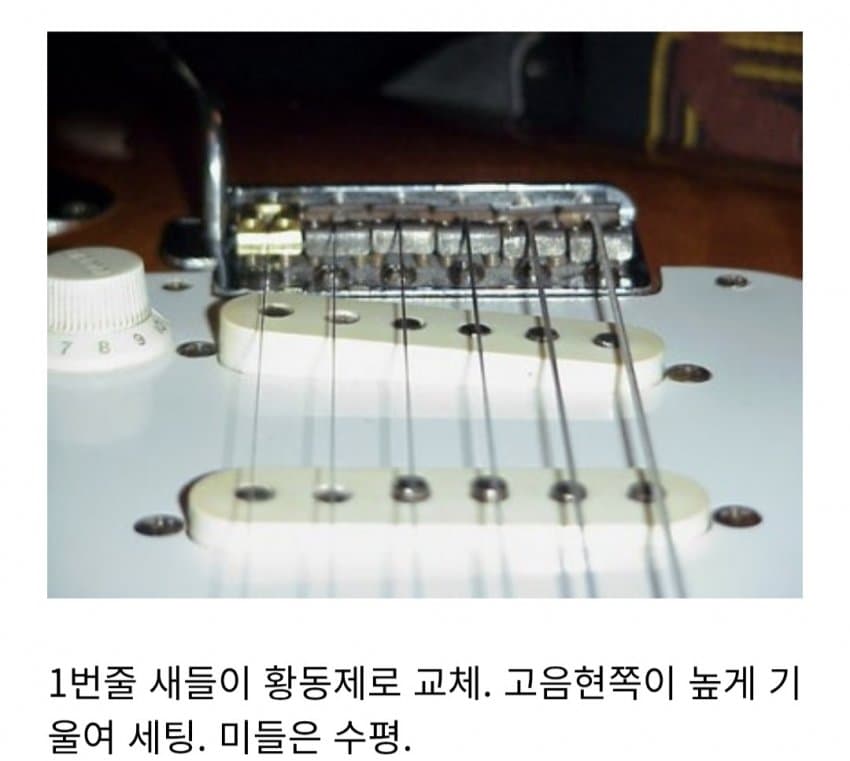 5. 거친 소리를 줄인다며 1번줄 새들만 황동 블록 새들로 교체해서 사용