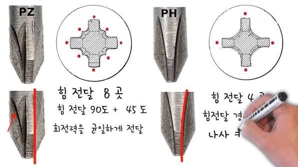 나사산 규격은 PZ, PH로 나눠져용